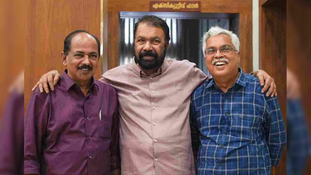 എം എൻ സ്മാരകത്തിൽ ബിനോയ് വിശ്വത്തിനും ജി ആർ അനിലിനും ഒപ്പം മന്ത്രി വി ശിവൻകുട്ടി