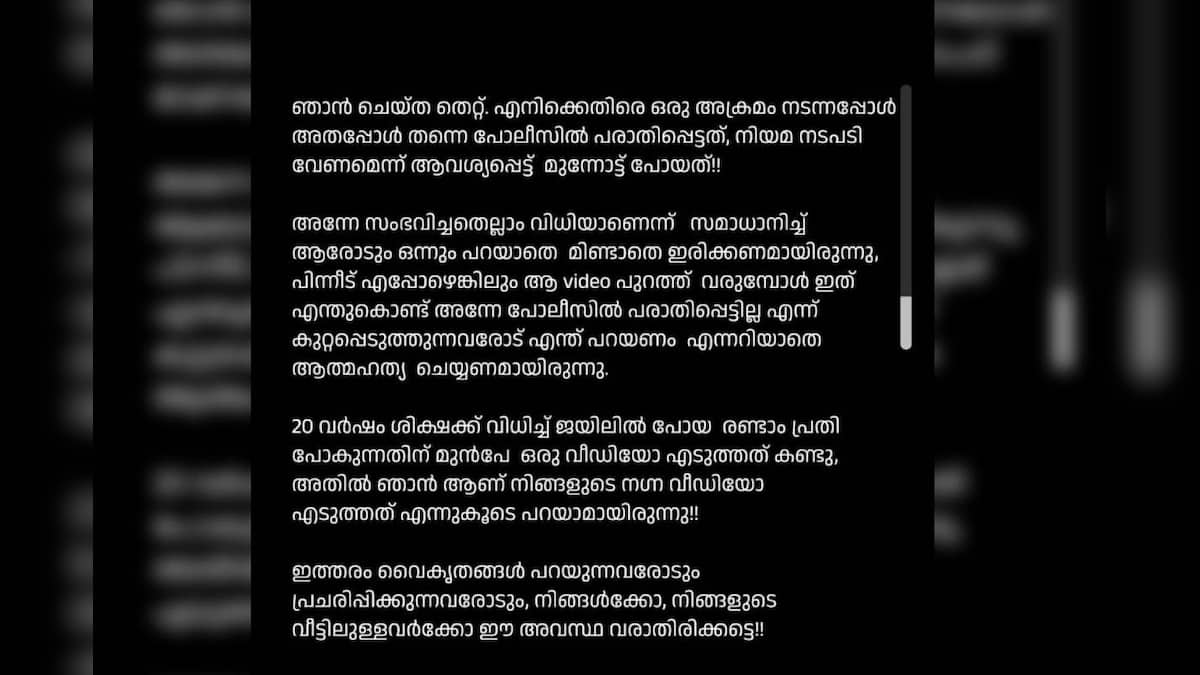 ‘ഞാനാണ് നിങ്ങളുടെ നഗ്ന വീഡിയോ എടുത്തത് എന്നുകൂടെ പറയാമായിരുന്നു’; വൈകാരികകുറിപ്പുമായി അതിജീവിത| Actress Assault Case Survivor Shares Emotional Note on Social Media | Kerala