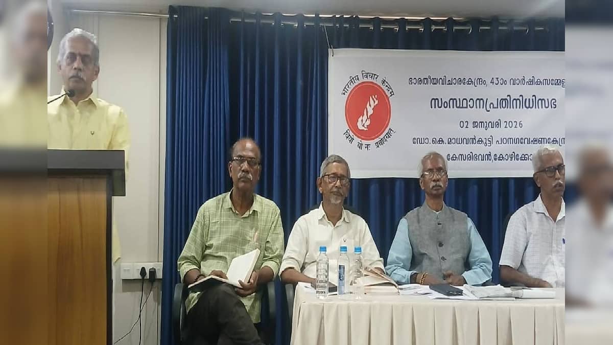 കോഴിക്കോട്: രാജ്യത്തെ ക്ഷേത്രഭരണം സുതാര്യവും രാഷ്ട്രീയമുക്തവുമാക്കാൻ കാലാനുസൃതമായ ഏകീകൃത കേന്ദ്ര നിയമം കൊണ്ടുവരണമെന്ന് ഭാരതീയ വിചാരകേന്ദ്രം ആവശ്യപ്പെട്ടു. കോഴിക്കോട് കേസരി ഹാളിൽ നടന്ന ഭാരതീയ വിചാരകേന്ദ്രത്തിന്റെ 43-ാമത് സംസ്ഥാന പ്രതിനിധി സമ്മേളനത്തിലാണ് ഇത് സംബന്ധിച്ച പ്രമേയം അംഗീകരിച്ചത്. ശബരിമലയിലെ സ്വർണ്ണക്കൊള്ളയുമായി ബന്ധപ്പെട്ട് പുറത്തുവരുന്ന വാർത്തകൾ ഭക്തസമൂഹത്തിൽ വലിയ ആശങ്കയുണ്ടാക്കുന്നുവെന്നും രാഷ്ട്രീയ അധികാരം ഉപയോഗിച്ച് ദേവസ്വം ഭരണാധികാരികൾ ക്ഷേത്രസ്വത്ത് അപഹരിക്കാൻ ശ്രമിക്കുകയാണെന്നും സമ്മേളനം വിലയിരുത്തി.
