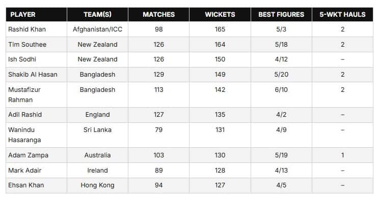 ടി20യിൽ ഏറ്റവും കൂടുതൽ വിക്കറ്റുകൾ നേടിയ താരങ്ങൾ