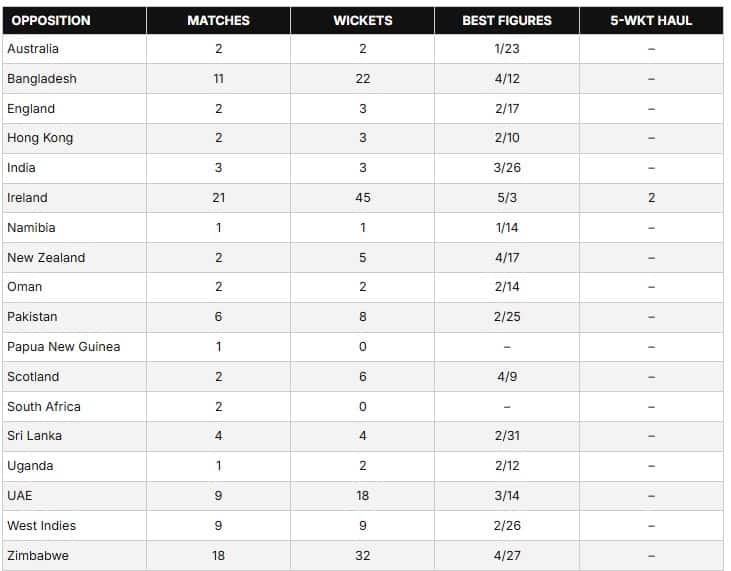 ടി20യിൽ റാഷിദ് ഖാന്റെ റെക്കോർഡ് (ടീം തിരിച്ച്)