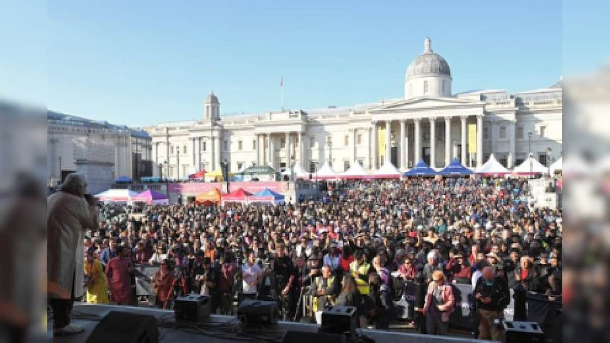 ലണ്ടനിലെ ദീപാവലി ആഘോഷപരിപാടിയായ സ്ക്വയര് 2025-ല് പങ്കെടുക്കാനായി ട്രാഫല്ഗര് സ്ക്വയറില് ആളുകള് ഒത്തുകൂടിയതിന്റെ ചിത്രങ്ങളാണ് സോഷ്യൽ മീഡിയയിൽ പങ്കുവച്ചത്